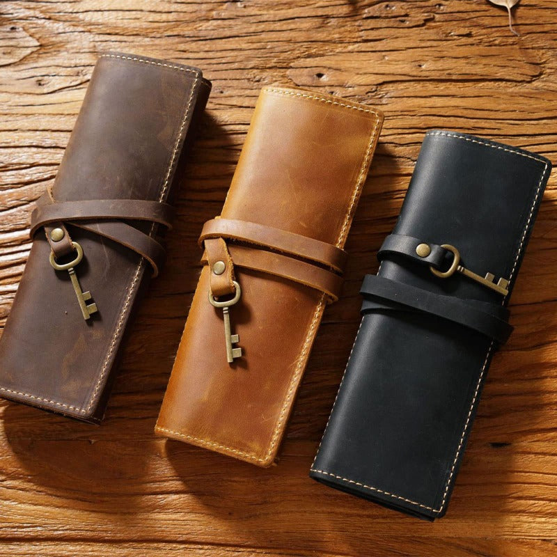 Pencil Roll Case Retro Pencil Wrap Bag Portable Roll Up Pouch Pen Holder Case Pencil Holder Organizer School Supplies Leather Pencil Wrap Bag Practical Pencil Roll Bag Handmade Pen Bag For Students