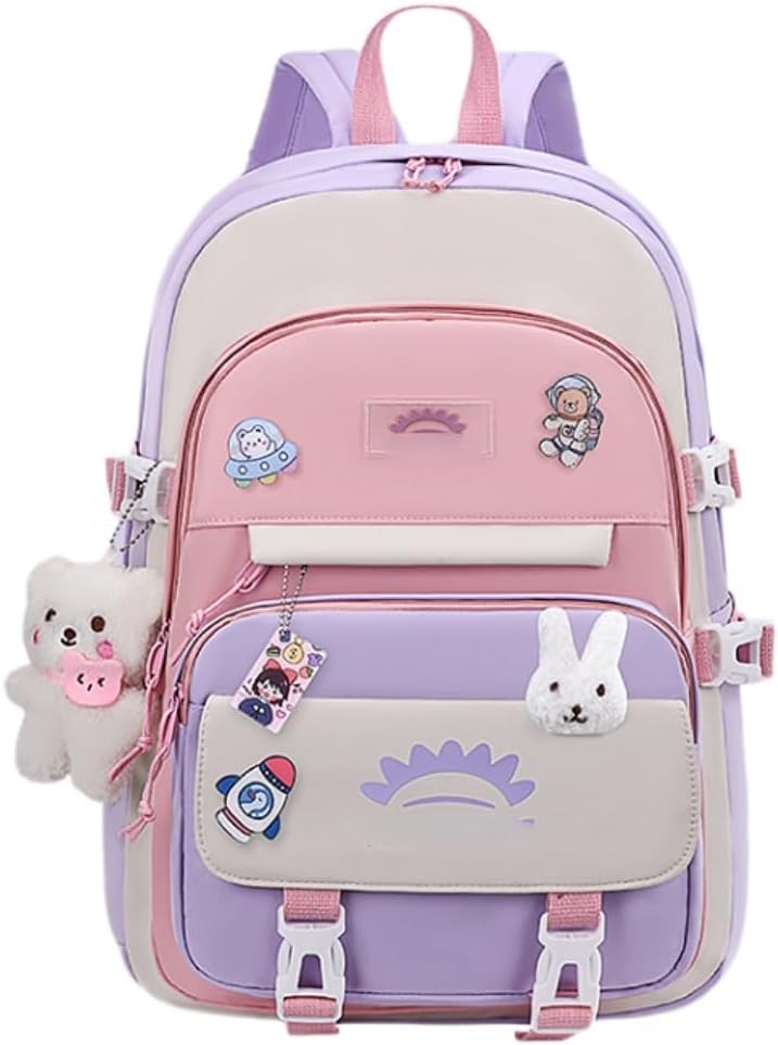 Kids School Backpack Girls Laptop Backpack Elementary School Bags Bookbags With Pins and Pendant For Teen Children School Backpack For Teens Girls