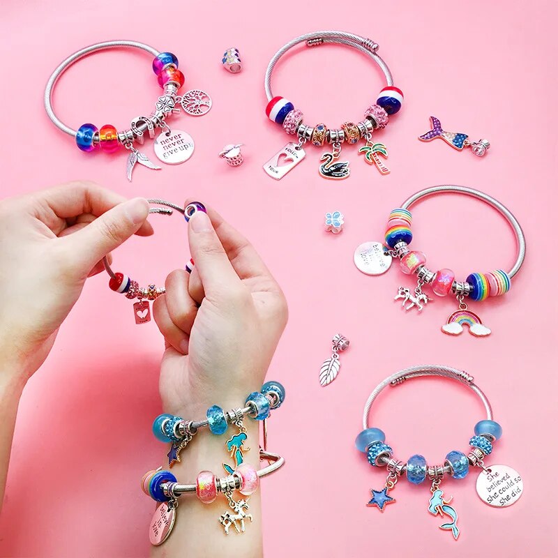 Craft beautiful and magical jewelry with our Charm Jewelry Making Kit! Perfect for girls and teens aged 5-12, this kit includes beads, charms, and instructions to make charming unicorn and mermaid creations. A great gift for developing creativity and fine motor skills.