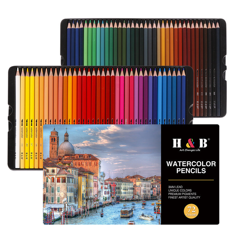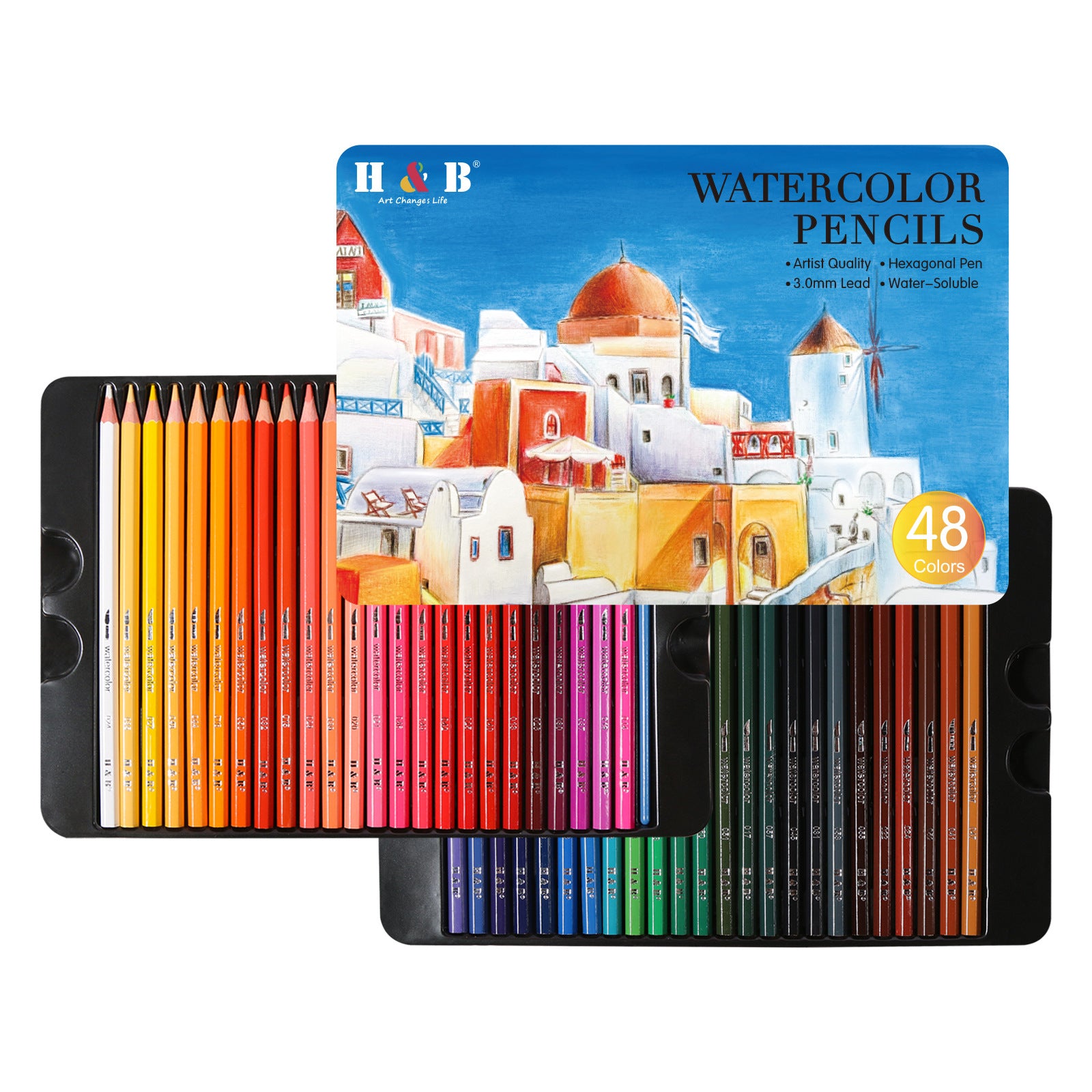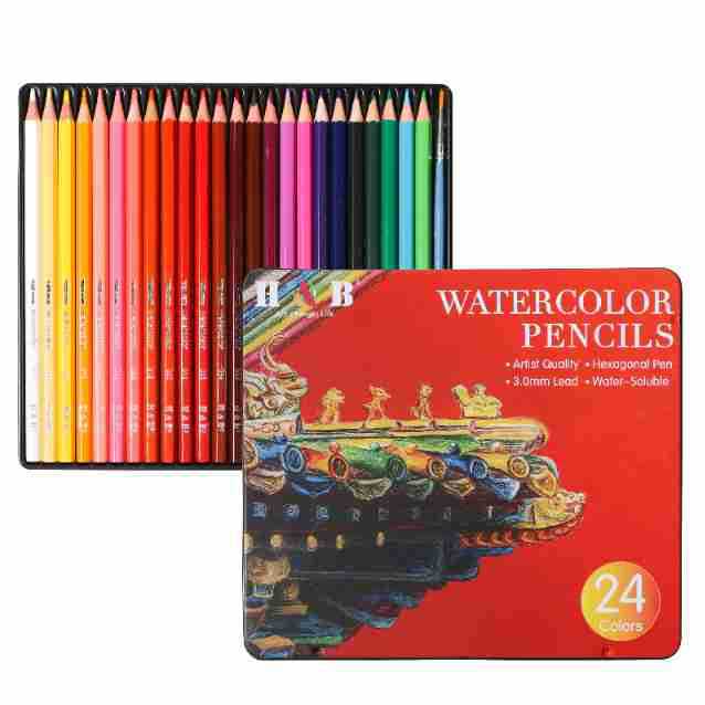 Water-soluble Colored Pencil Set 24 Colors 36 Colors 48 Colors Painting Set Professional Art Supplies With Iron Box